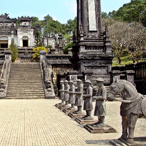 Après un repos suffisant, vous pourrez repartir visiter la Citadelle: construite en 1805. Longue de 10 km, elle rappelle les fortifications de Vauban et renferme la cité impériale et la cité pourpre interdite. Vous ne manquerez pas de voir la tour du drapeau, haute de 17m50 et les neufs canons dynastiques minutieusement sculptés, situé à l’entrée d’une des portes de la citadelle. Vous pénétrez ensuite dans la Cité par la porte principale, la porte Ngo Mon. Les allées ombragées vous mèneront vers les nombreux temples construits dans l’enceinte de la Cité impériale.