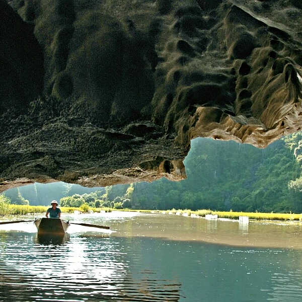 Après le petit déjeuner à l’hôtel, départ matinal, avant l’arrivée des autres touristes venant de Hanoi, pour la promenade en barque à rame en longeant la jolie rivière de Ngo Dong (en environ 1h30). La rivière serpente entre les montagnes, passant sous des voutes calcaires creusées par la rivière.