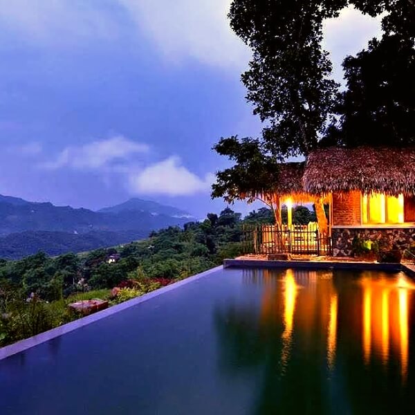 • Arrivez à l’Eco Lodge de Pu Luong à temps pour déguster un délicieux déjeuner. Ensuite, découvrez ce lieu : les magnifiques vues sur la vallée, la piscine, les Bungalows…